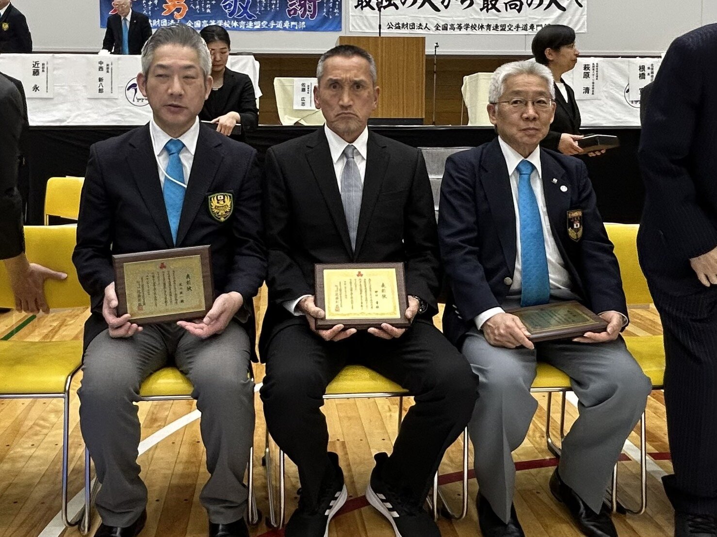 令和8年3月23日(月)~26日(木)に開催されました「第45回全国高等学校空手道選抜大会」の開会式におきまして、本専門部の野口章先生(古河第一高)が功労者表彰を受賞いたしました。