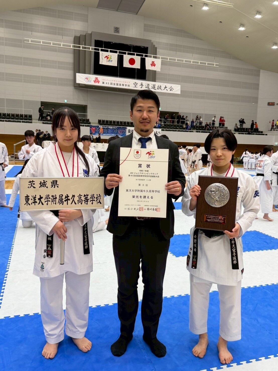 令和8年3月24日(火)~26日(木)にエア・ウォーターアリーナ松本(長野県松本市)で開催された「第45回全国高等学校空手道選抜大会」において、本県から出場した東洋大牛久高校が女子3人制団体組手で見事3位入賞を果たしました。